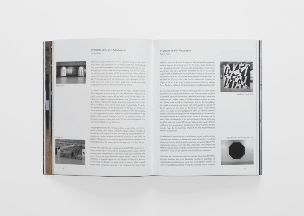 Publikation anlässlich der Ausstellungen Dystotal, Pori Art Museum, Pori 2014 und Dystotal, Ludwig Forum für Internationale Kunst, Aachen 2016, Texte von Daniel Cohnitz, Stephan Günzel, Pia Hovi-Assad, Konsortium, Tara MacDonald, Jari Ortwig, Ursula Ströbele, Stephan Trüby, Deutsch und Englisch, Softcover, 344 Seiten, 24,5 x 19,5 cm, Konzept Konsortium, Gestaltung Sebastian Freytag, Hrsg. Andreas Beitin, Esther Boehle, Esko Nummelin, Verlag Koenig Books, London 2016, S. 45, 55, 65, 79, 175, 256, 257